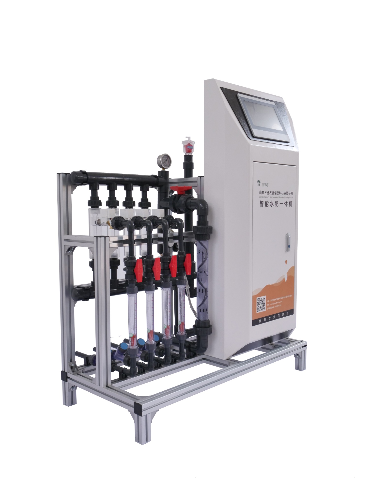 智多星系列物聯網水肥一體機施肥通道有4個,每個施肥通道均配備有流量計,可以顯示當前所施肥料的流量;10寸中文觸摸屏;可控制6灌區(可擴展18灌區);配備有流量調節閥門,可以根據實際需要調整施肥流量;支持物聯網遠程操控。