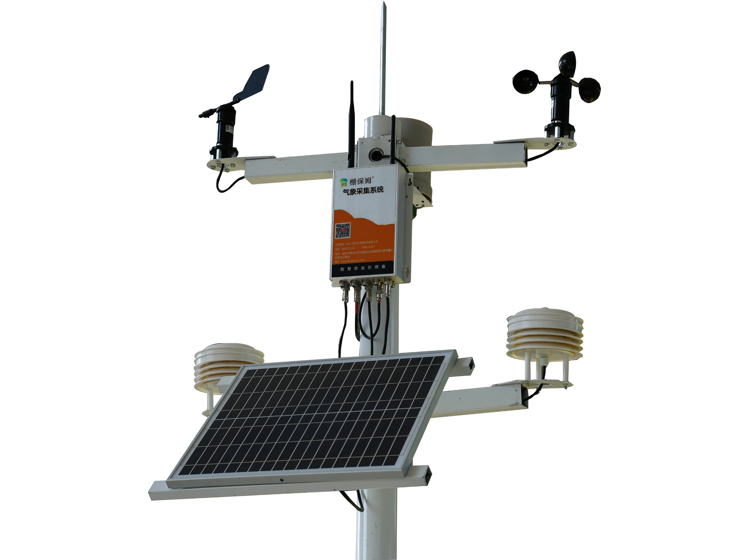 氣象站可實時監測園區內的空氣溫度、空氣濕度、二氧化碳濃度、土壤溫度、土壤濕度、光照、風速、風向、雨雪等環境數據,為科學種植提供數據支持。